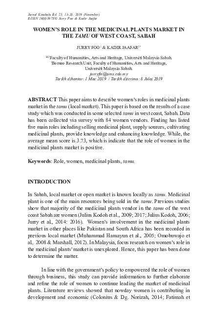 Pdf Women S Role In The Medicinal Plants Market In The Tamu Of West Coast Sabah Jurry Foo Academia Edu