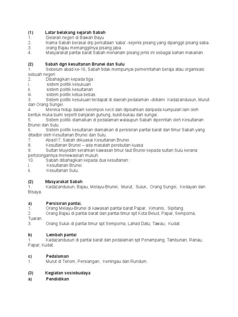 2 Sabah dgn kesultanan Brunei dan Sulu. SABAH 1 Latar belakang sejarah Sabah 1. Sc Hons BioPerubatan UPM.